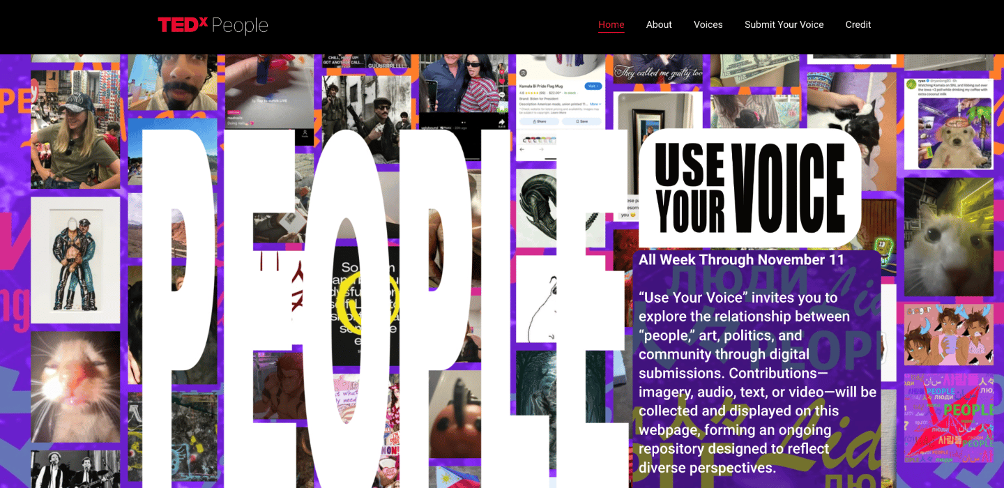 The TEDxPeople initiative, spearheaded by Super Weird Studios, TEDxBellarmineU, and the TED Democracy Initiative, invites individuals to submit a variety of digital media, including imagery, audio, text, or video, to explore the relationship between art, politics, and community. This initiative seeks to create a comprehensive repository of diverse perspectives as democracies face challenges on a global scale. The TED Democracy Initiative aims to reshape narratives towards a constructive vision for the future of democracy while enhancing civic culture through storytelling and community engagement.
